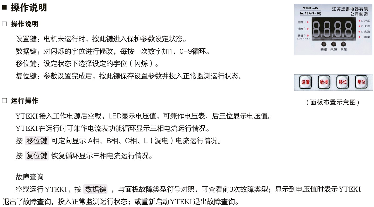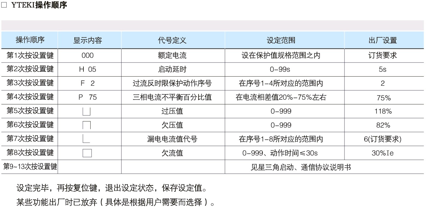 YTEKI控制與保護開關-參數設置