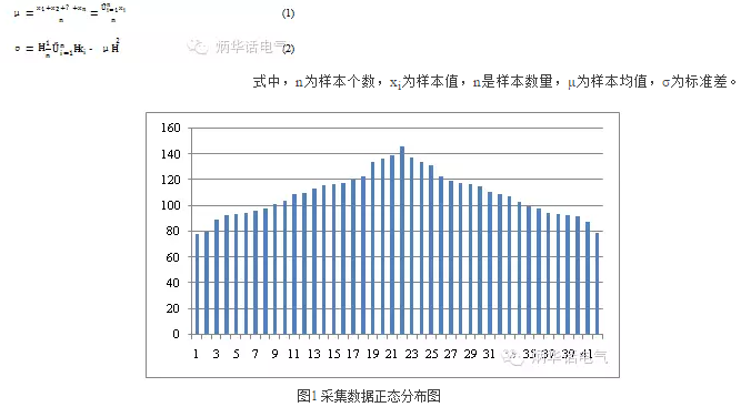 經分析,此次采集的42組數據都是在合理范圍內的,是有效的,沒有壞點。實際應用上,常考慮一組數據具有近似于正態分布的概率分布。那么對現有的42組數據樣本進行正態分布處理,如圖1所示,由式(1)、(2)得出樣本均值μ=108.99,標準差σ=17.457。