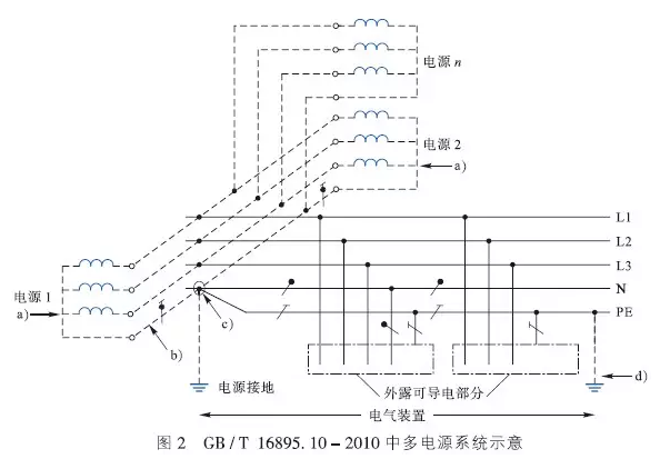 圖2為摘錄GB / T 16895. 10 - 2010圖44. R7B多電源系統示意。圖中示出了n個電源,對于理解“多電源系統”更明確。