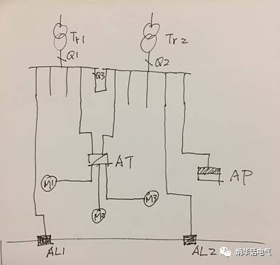 圖1系統是常用的低壓配電系統,是解決你所說問題的措施之一,并經工程實際驗證是行之有效的。假設變壓器Tr1故障停止工作,斷路器Q1斷開,延時合上母聯斷路器Q3,由變壓器Tr2帶兩端母線上的二級及以上負荷,這是規范所要求的,即《民用建筑電氣設計規范》JGJ 16-2008第3.3.1條第1款,“同時供電的兩路及以上供配電線路中,其中一路中斷供電時,其余線路應能滿足全部一級負荷及二級負荷的供電要求”。因此,對于AT箱而言,無論是一級負荷還是二級負荷,都可以保證繼續供電,不會出現混亂現象。